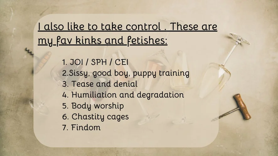 Ahegao, Mistress, Flashing, Jerk-off Instruction, Heels, Masturbation, Nylon, Upskirt, Cock Rating, Doggy Style, Twerk, Dirty Talk, Fingering, Tittyfuck, Blowjob, Orgasm, Pegging, Cuckold, Role Play, Facesitting, Strapon, Striptease, Topless, Humiliation, Foot Fetish, Footjob, Sex Toys, Cowgirl, Dildo or Vibrator